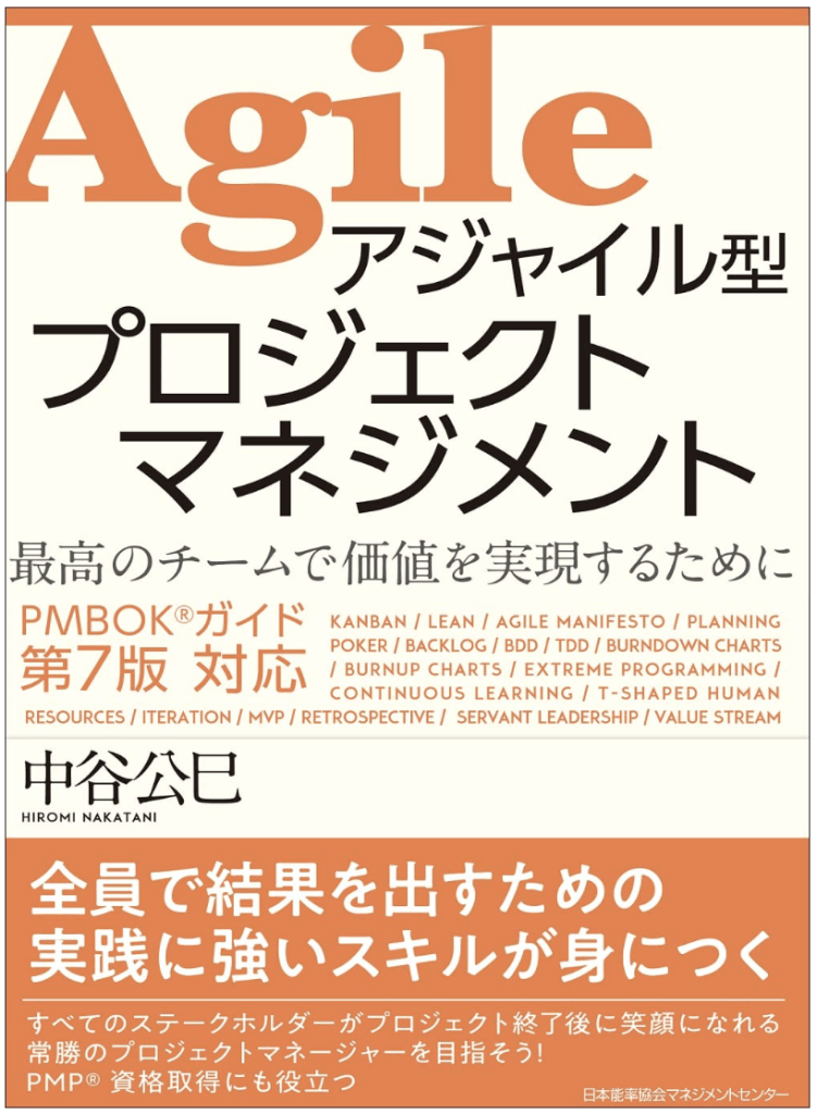 上記は中谷公巳氏が執筆した本で、アジャイル手法を体系的に解説しています。PMBOKガイド第7版に対応しており、伝統的なプロジェクトマネジメントとアジャイル手法の違いや、それぞれの利点を理解するのに役立ちます。特に、アジャイルの基本的な概念から具体的な実践方法までを詳細に説明しているため、初心者にもおすすめです。