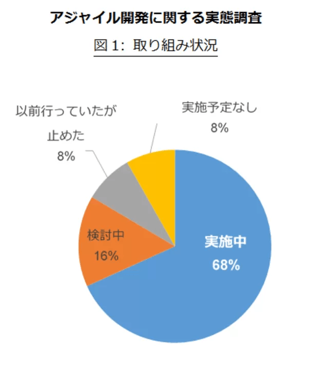 (出典:SHIFTがアジャイル開発に関する実態調査を実施 約7割の企業がアジャイルを導入 識者不足による組織全体への適応が課題題|@Press)