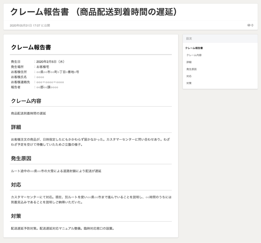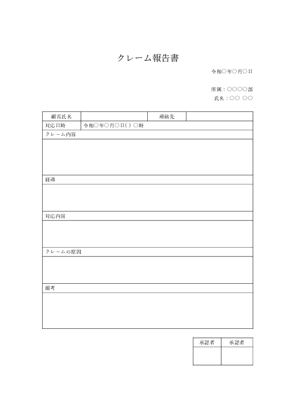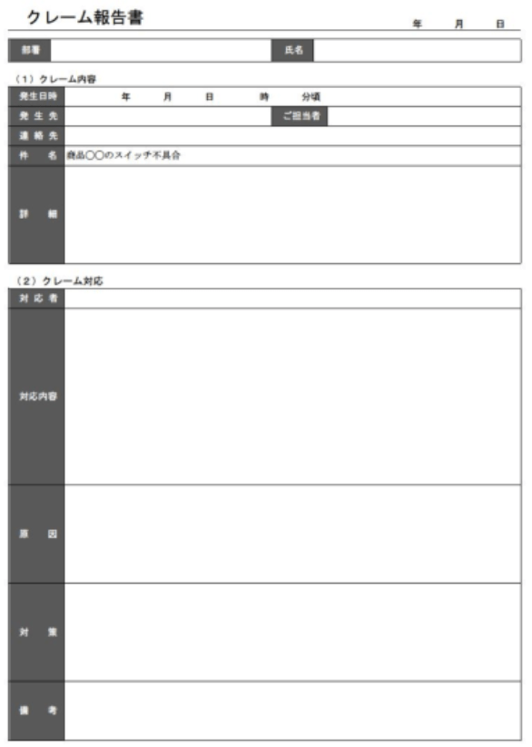 クレーム報告書の例