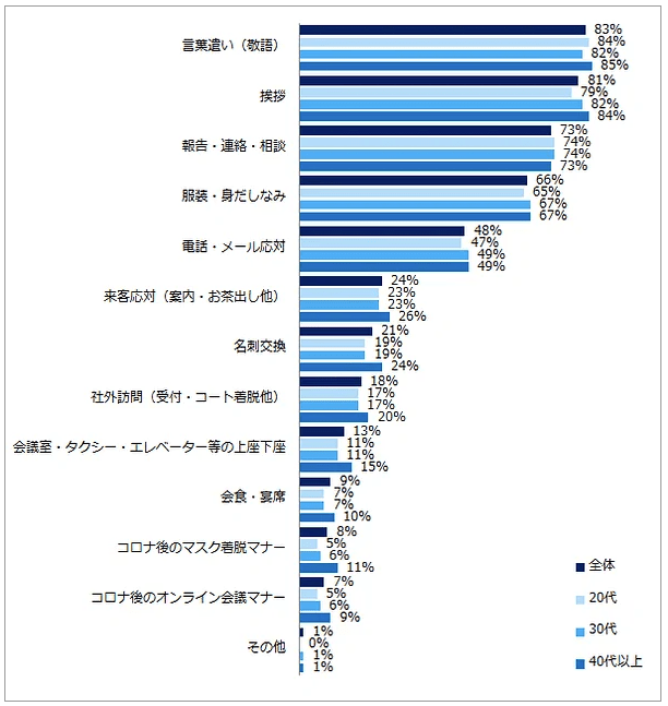 (出典:社会人が重要だと思うビジネスマナー、「あいさつ」や「報連相」を上回った1位は? 【エン・ジャパン】|エン・ジャパン)