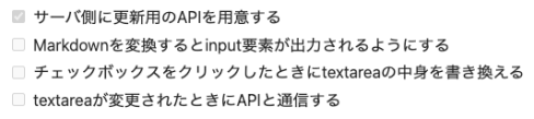 - [ ] Markdownを変換するとinput要素が出力されるようにする