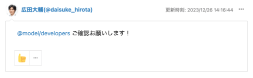 - グループのメンバーにだけメンションしたい場合は@チーム名/グループ名と入力します。