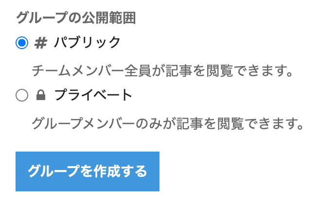 社外秘情報や人事情報など、一定の範囲での共有をしたい場合にはプライベートグループを作成してください。