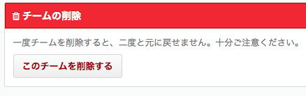チーム設定ページの下部にある、「このチームを削除する」ボタンを押下します。