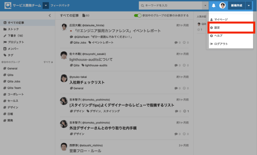 1. チーム設定ページを開く