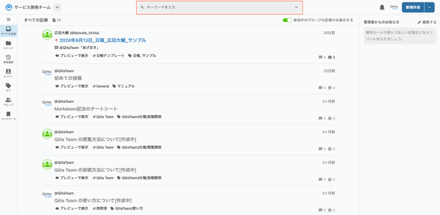 検索機能とは過去の投稿を検索して参照できる機能です。
