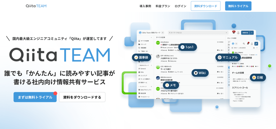 『無料トライアルを試してみる:ナレッジが驚くほど溜まる情報共有サービス|Qiita Team』