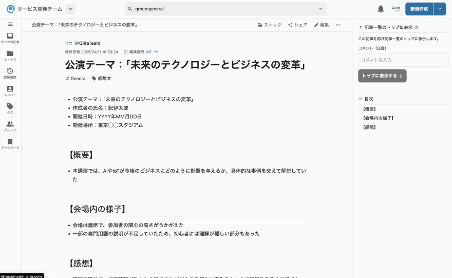 無駄を削ぎ落とした情報共有ツール【Qiita Team】